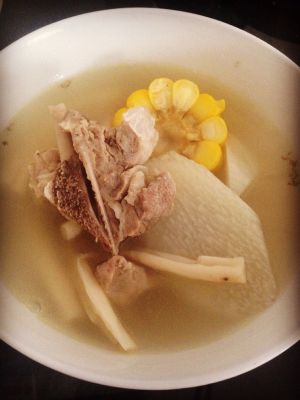 过一段时间加入玉米,一直煮,然后再加入杏鲍菇,等汤快熬好的时候,最后放入山药,小熬一会就好了。
