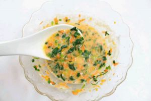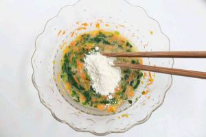 食材搅拌均匀,再放入面粉,1岁以上宝宝吃可以加少许细盐调味。
