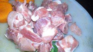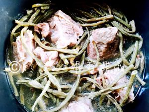 准备材料;排骨剁块洗净;干豇豆温水泡发;