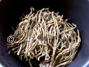虫草花及泡虫草花的水,姜片放入排骨中加入足量的开水