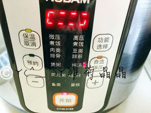 电压力锅自动烹制,好了会有提示,等冷却,气压阀回落,开锅!
