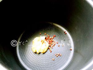锅烧开水后下莲藕,排骨和姜片盖上盖调好时间。(我用的是电高压锅)