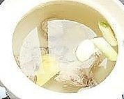 焯水后的排骨,放入炖盅,加入开水没过排骨,放两片生姜,少许料酒。 此处一定不要放盐。