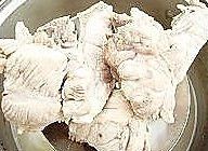 新鲜排骨洗净,冷水下锅,加入生姜,葱结,料酒,煮开焯水,排骨捞起沥水。
