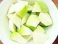 玉米切断,排骨切块,白萝卜切滚刀块,姜切四片,葱切断。