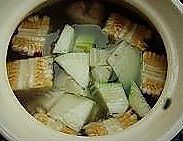 锅中放凉水在放入排骨 姜片 料酒 盐 中火慢熬50分钟后加入冬瓜再薮10分钟即可