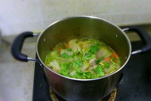 半小时后,一锅清淡而又富含营养的汤就好了,根据个人口味加适量盐,然后就可以享受美味了。