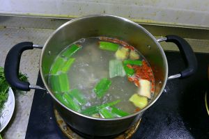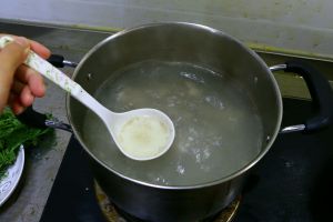 放入海带后 再煮二十分钟左右 放少许盐 再等一两分钟 洒上葱花后即可出锅食用