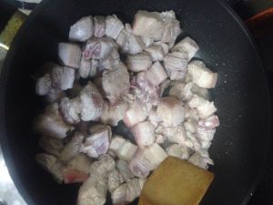 倒入五花肉加入生抽老抽翻炒3分钟,