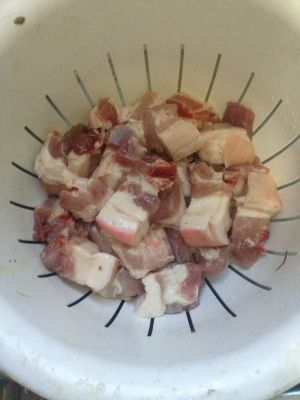 将酸菜先浸泡大约半个小时,去吃部分的盐味和酸味。之后切切碎(不要太碎,酸菜鱼里那种就差不多) 五花肉切块,生姜切块。