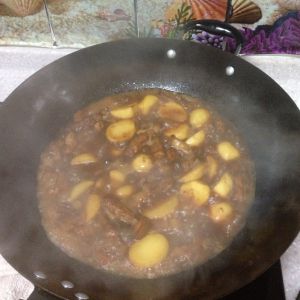 大概20分钟后土豆和肉就熟了.大概20分钟就熟了.新土豆软的比较快哦,根据自己的口味加适量的盐.鸡精.味精.可以装盘咯