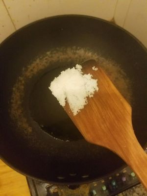 锅里留底油,放入半勺白糖,开小火不停搅动直到颜色变成焦糖色
