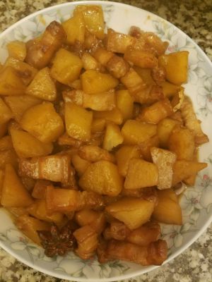 成品图。最后剩了点肉,土豆吃光光了,下次热的时候可以随便放些青菜。