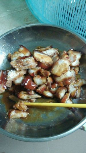 将煎好的五花肉捞起,用蜜糖、老抽、盐、蚝油或者鲍汁调味上色,再下油锅煎三分钟即可。