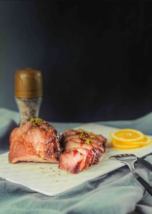 成品出炉 将肉从烤箱取出,再在肉上面刷上一层腌料汁和蜂蜜。