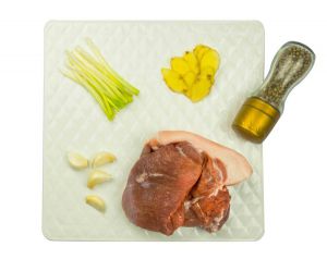 备好食材 备好所需食材。将蒜剥皮用刀拍碎,姜切片,大葱切条状备用。