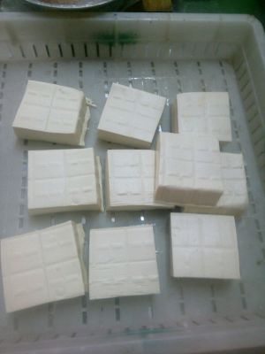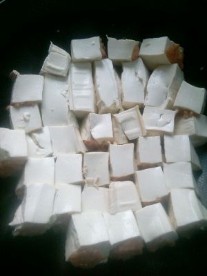 把豆腐切小块,也可以分两块,个人喜欢,随便吧!开始酿了!
