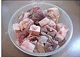 猪后腿肉切块,焯掉血水,姜切片、蒜头拍碎或剁成蒜蓉均可、香菇泡发备用。