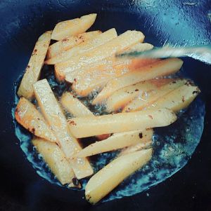 用剩下的油炸土豆条(๑•ั็ω•็ั๑)外观金黄有点焦就行,捞出