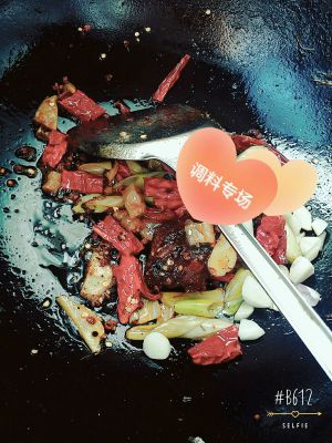 姜蒜香味炒出后,加入酱油适量,白砂糖适量,料酒少许 快要起锅时,放入葱丝,翻炒 加适量盐。
