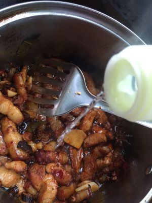 加入一小碗水,1个八角,小火煮2分钟大火收汁