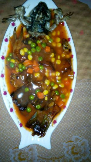 锅倒油放入鱼炸至两面金黄,切记,油温要高,鱼放进去炸的时候才不会粘锅。