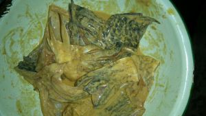 彩虹鲷杀好洗净,两面斜着划几刀,方便入味,撒点盐,一点料酒,腌制十分钟