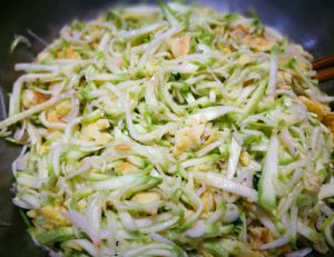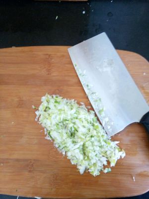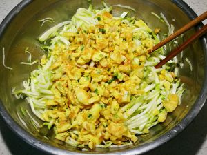 大葱切成末,和西葫芦丝拌到一起