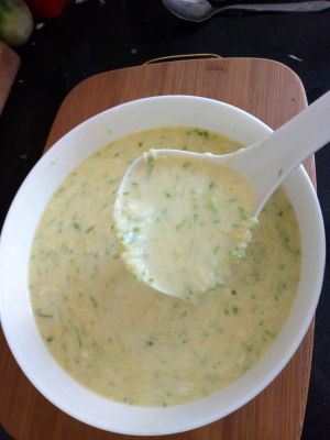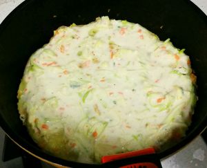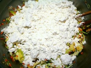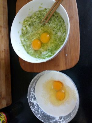 和点黏糊,用温水比较好,里面打俩鸡蛋,面也可以直接加到西葫芦里面,经过多次尝试,感觉还是单和比较好