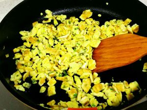 我用的西葫芦比较大,所以用了四个鸡蛋,这样做出来比较软