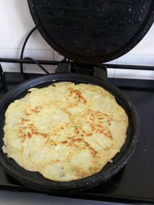 不要摊太厚,均匀点好,等电饼铛自己蹦灯就行