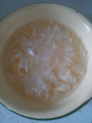 银耳泡发洗净,撕成小朵,放入电炖锅中,加适量水。(因最后还需放入雪梨,而且电炖锅失水不严重,水不宜过满)。炖煮2小时。