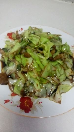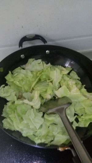 翻去圆白菜片,翻炒一会加入花椒粉,酱油,在翻炒不到两分钟,关火加鸡精半勺盐,出锅
