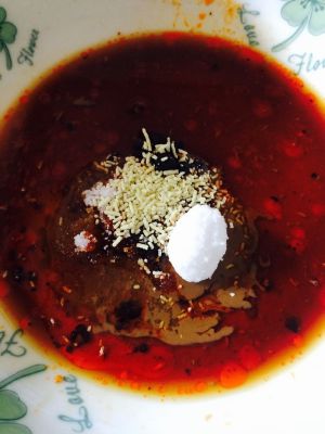 调汁: 将辣子和胡椒放入干净的碗中,锅中热少许油,油温一定要热,泼入碗中,将辣子和花椒的香味散出来. 然后加入生抽,糖,醋,香油等调味.