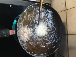 油烧热 筷子放入冒泡。把模具放入锅中加热 这很重要 不然一会不好脱模
