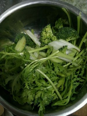 茼蒿,西兰花,我少加了点西芹在里面。