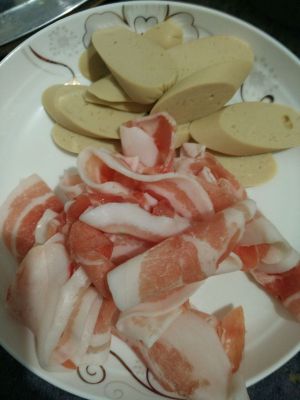 五花肉片和鸡肉肠。