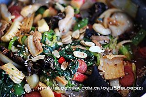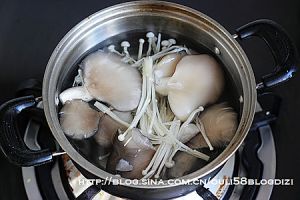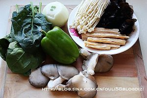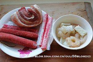 把所有的菜和海鲜用水焯一边,除了木耳和绿色蔬菜不需要