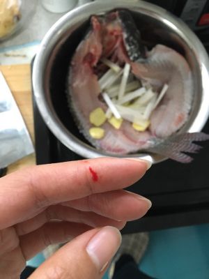 先用料酒将鱼的内外按摩一遍,然后往鱼肚中塞入葱姜,鱼背部再塞入葱姜,盖保鲜膜,送人冷藏,腌制2小时,去腥
