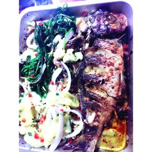 ❥在入烤箱之前再往鱼身上抹一层食用油 将烤盘放在烤箱最上层,只用上层火烤,最高温230度烤20分钟,然后再将烤盘放在中层烤十分钟。 烤得过程可以随时观察,我也是这样做的。 外焦里嫩,味道鲜美