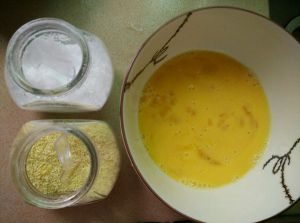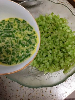 苦瓜略切碎些,准备好土鸡蛋,共同置于碗中。