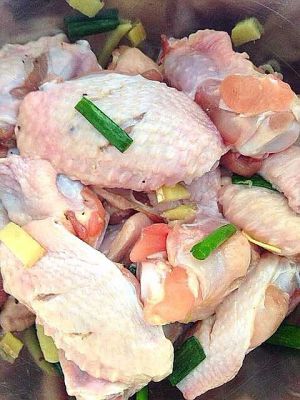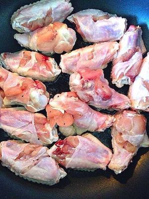 鸡翅洗干净,吸干水,划刀,用少许盐,料酒,葱姜,黑胡椒粉腌半小时