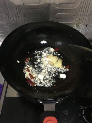 炒锅放油,将葱姜蒜爆香,放入火锅底料。