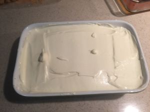 17.倒入慕斯糊轻轻震平,放入冷藏一夜。