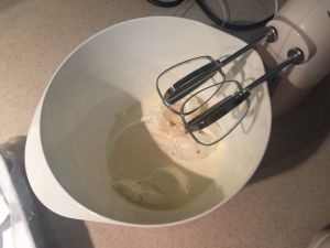 接下来我们打发蛋白:蛋白里面加入糖、柠檬汁、香草精。