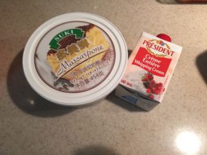 15.淡奶油和马斯卡彭部分混合拌匀。