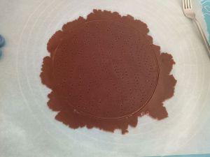 用牙签或者叉子在饼皮上扎小孔,防止饼皮在看的过程中会鼓起,烤箱140度预热六分钟,烤制8分钟,