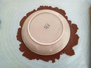然后用碗扣在面饼上,压一压之后拿下来。 这样的面饼,做八个,要注意面团的分配~