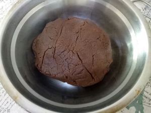 用和面的手法,做成光滑的面团,差不多有点黏手,但又不很稀软的程度,就可以了。 太干可以倒些食用油,太软就加面粉。 如若颜色太浅,加可可粉也可以,不过注意可可粉加多了会发苦。 一旦可可粉加多,就加蜂蜜或者白糖,然后继续揉均匀,以上为补救措施~