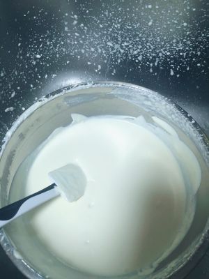 把晾凉的鸡蛋液倒入马斯卡彭中搅拌均匀